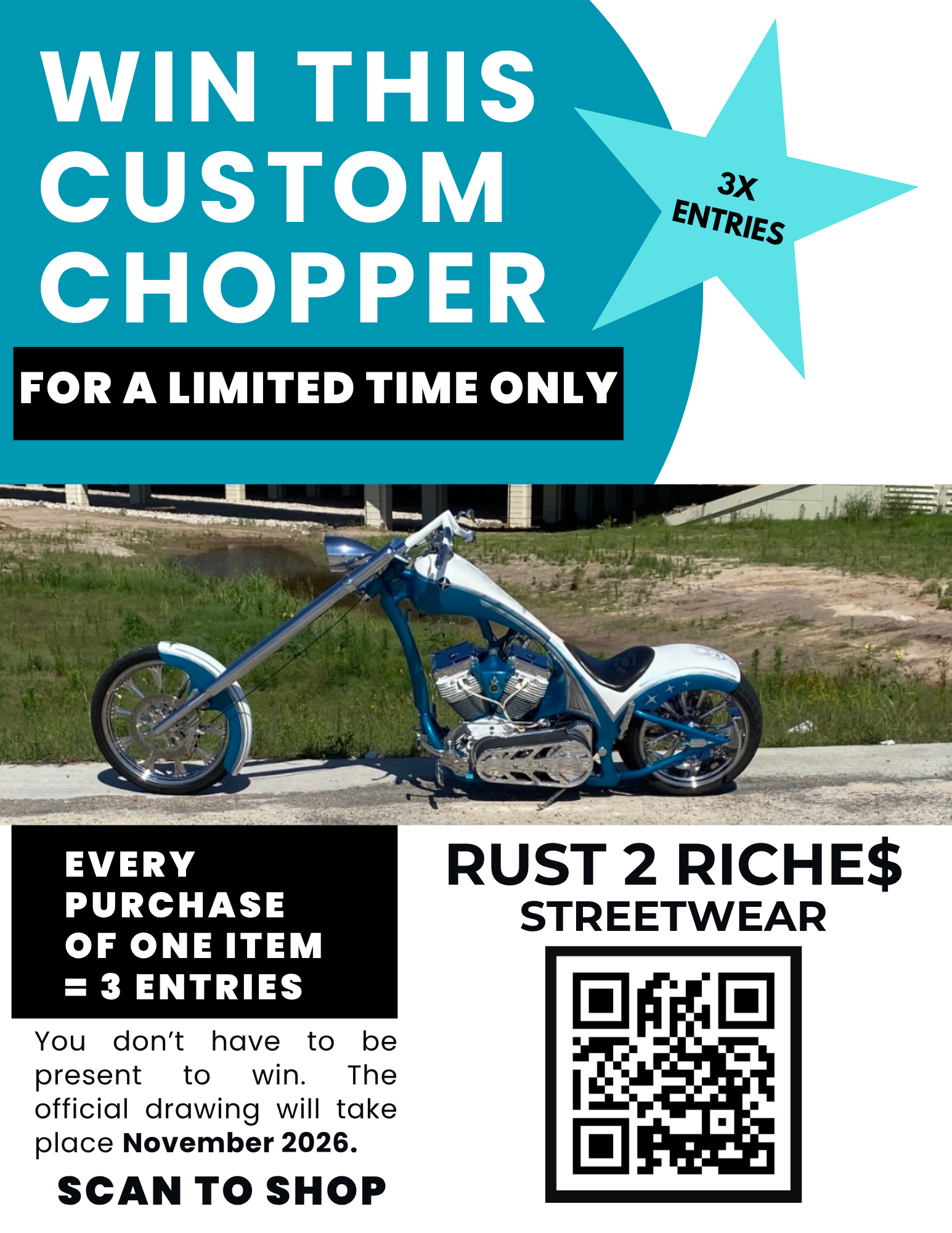 A fully custom Rust 2 Riche$ chopper, detailed, handcrafted, and built to turn heads.